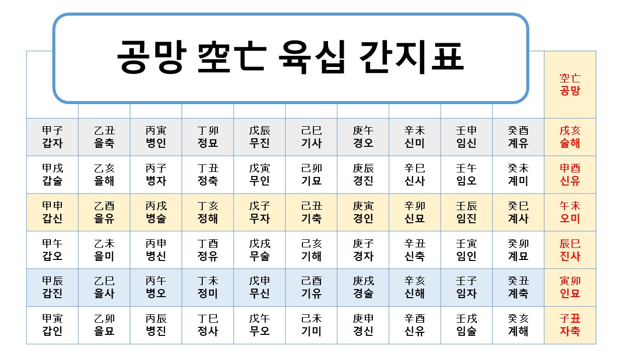 그리고 이 공망은 사주팔자상 본인의 일주를 바탕으로