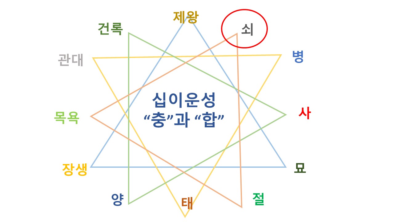 십이운성 "쇠(衰)"는 자라나는 모습을 가리키는 "양(養)"과 충의 관계에 있습니다.