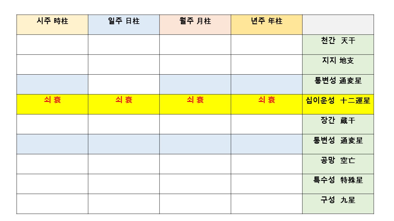 이번 글에서는 "십이운성- 쇠(衰)"에 대해서 이야기를 해보고자 합니다.